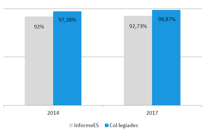 Los datos que proporciona el propio Colegio (CEESC), cifran en el 92,73% las educadoras o educadores sociales que han trabajado a lo largo del año 2017 (un 0,73% más que en el 2014). En el caso de las personas colegiadas, el crecimiento es de un 1,5%, y el grado de ocupación llega hasta el 98,87%. Según este mismo informe, el 90% encuentran trabajo durante el primer año después de graduarse.