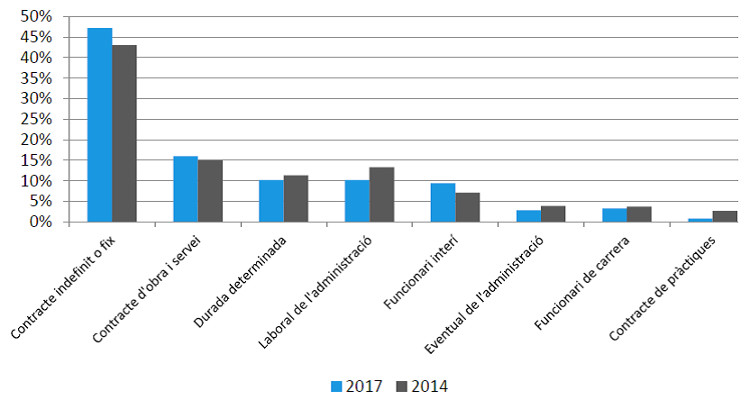 Seguidamente, también traemos a colación los datos más recientes que se han publicado sobre cómo es el mercado laboral de los SS y qué salida representa para las/los profesionales de la educación social. Ante la escasa información específica de que se dispone, nos guiaremos por los datos que consideramos más significativos del Informe de l’estat de l’Educació Social a Catalunya, 2017 (Col·legi d’educadores i educadors socials de Catalunya, 2018b) para poder llegar a ciertas conclusiones.