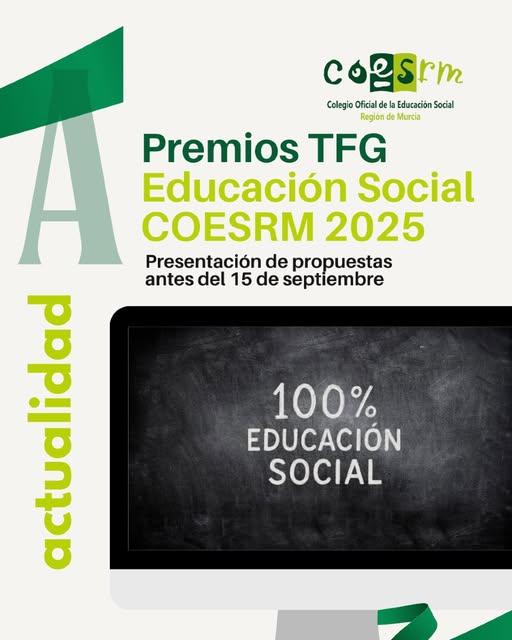 El Colegio Oficial de la Educación Social de la Región de Murcia (COESRM) convoca los Premios Trabajo Final de Grado del Colegio Oficial de la Educación Social de la Región de Murcia del año 2025.