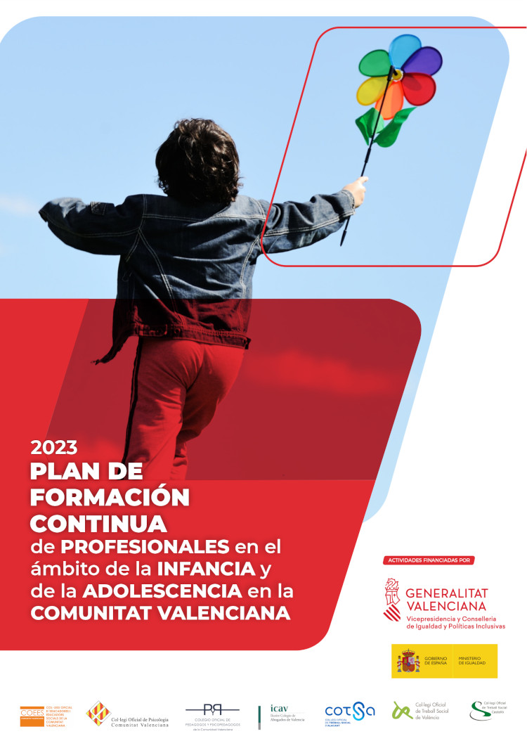 Dentro de este plan formativo, para mejorar la calidad de la atención profesional a niñas, niños y adolescentes, la Dirección General de Infancia y Adolescencia, en el marco del convenio de colaboración con el Col·legi Oficial de Psicología de la Comunitat Valencia, Colegio Oficial de Trabajo Social de Valencia, el Colegio Oficial de Trabajo Social de Alicante, el Colegio de Trabajo Social de Castellón, el Col·legi Oficial d’Educadores i Educadors Socials de la Comunitat Valenciana, el Colegio de Pedagogos y Psicopedagogos de la Comunitat Valenciana y el Ilustre Colegio de Abogados de Valencia convoca diferentes cursos de formación para profesionales del ámbito de la Infancia y Adolescencia. Todos los cursos son gratuitos y están acreditados por la Dirección General de Infancia y Adolescencia.