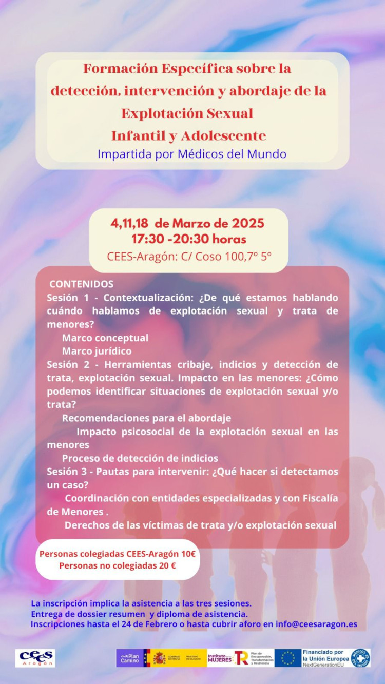El Colegio Profesional de Educadores y Educadoras Sociales de Aragón (CEES-Aragón) publica en sus redes sociales la siguiente formación: