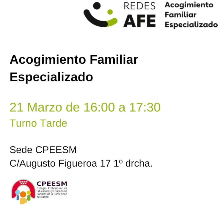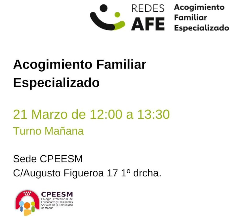 Lugar: Sede Colegio Profesional de Educadoras y Educadores Sociales de la Comunidad de Madrid C/Augusto Figueroa 17, 1º Drcha. Madrid 28004
