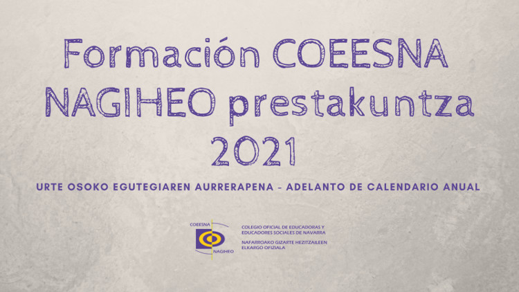 El Colegio oficial de Educadoras y Educadores Sociales de Navarra / Nafarroako Gizarte Hezitzaileen Elkargo Ofiziala (NAGIHEO/COEESNA) organiza las siguientes actividades formativas: