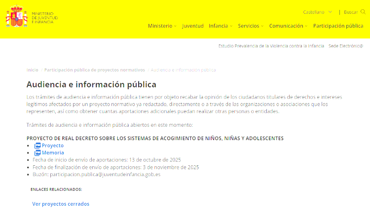 - Buzón: participacion.publica@juventudeinfancia.gob.es