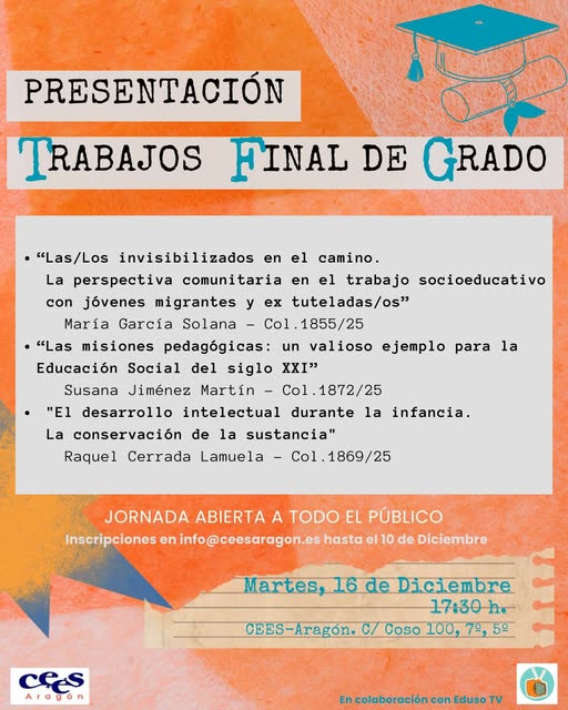 El Colegio Profesional de Educadores y Educadoras Sociales de Aragón (CEES-Aragón) publica en sus redes sociales  (Facebook) la siguiente actividad y celebración, cuya información adjuntamos en imágenes: «Nos hace especial ilusión convocaros…