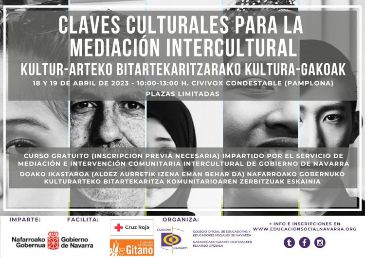El Colegio oficial de Educadoras y Educadores Sociales de Navarra / Nafarroako Gizarte Hezitzaileen Elkargo Ofiziala (NAGIHEO/COEESNA) organiza el curso «Claves culturales para la mediación intercultural»