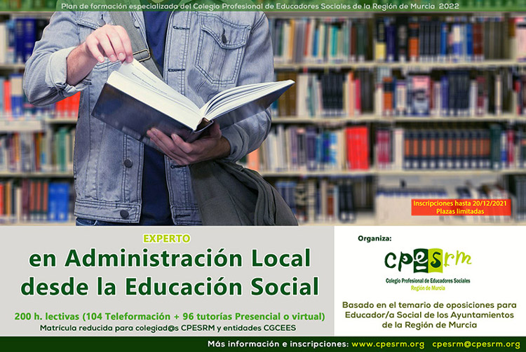 Titulación: Certificado oficial emitido por el Colegio Profesional de Educadores Sociales de la Región de Murcia.