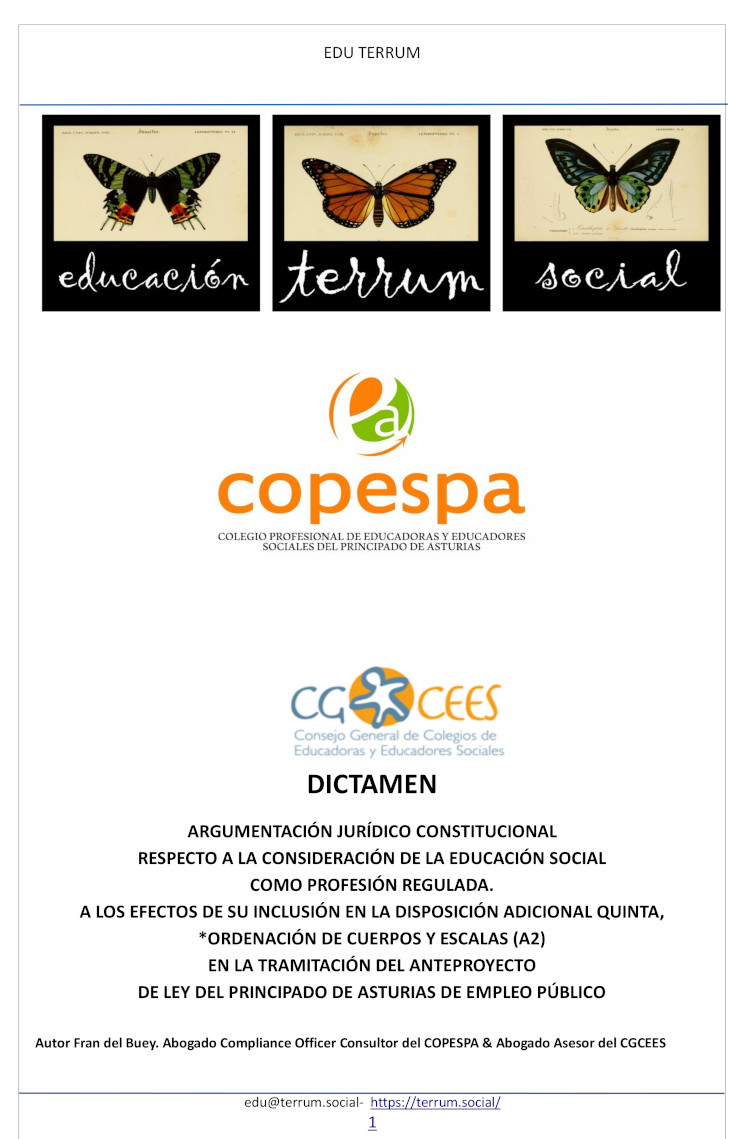 «Os compartimos un documento clave, en el desarrollo legislativo de la Educación Social en nuestra CC.AA., elaborada por los Servicios Jurídicos de #terrumsocial, y el letrado Francisco Xavier del Buey, del Colegio Profesional de la Educación Social del Principado de Asturias, con el que hace años se abordó el reconocimiento de la Educación Social como profesión con entidad propia, con la argumentación jurídico-constitucional respecto a la #EducaciónSocial como profesión regulada, que llevó a la inclusión del cuerpo de Educador/a Social Funcionaria en la ordenación de Cuerpos y Escalas, en la Ley de #empleopúblico del Principado de Asturias«.
