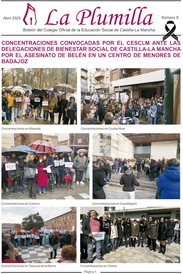 El Colegio Oficial de la Educación Social de Castilla-La Mancha (CESCLM)  ha editado el Nº 8 de “La Plumilla”, Boletín informativo del colegio, con toda la actividad colegial del primer trimestre de 2025.