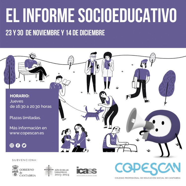 El Colegio Profesional de Educación Social de Cantabria (COPESCAN) organiza la siguiente propuesta formativa:
