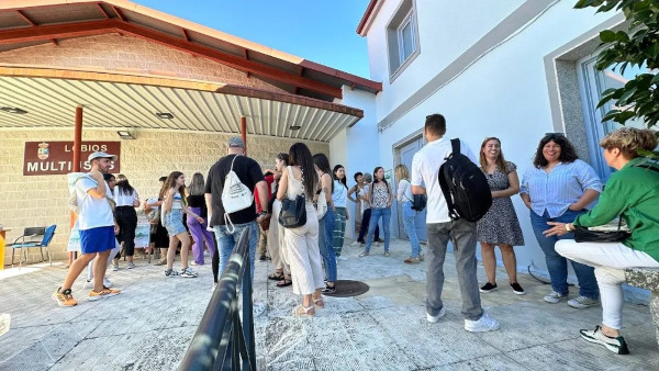 Encuentro de participantes delante del Edificio Multiusos de Lobios