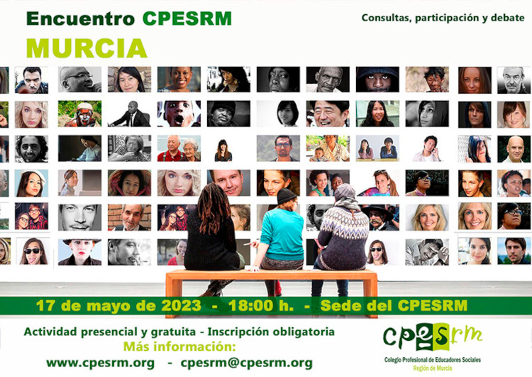 El Colegio Profesional de Educadoras Sociales de la Región de Murcia (CPESRM) organiza el primer Encuentro CPESRM en Murcia que tendrá lugar el día 17 de mayo de 2023 a las 18:00 h.