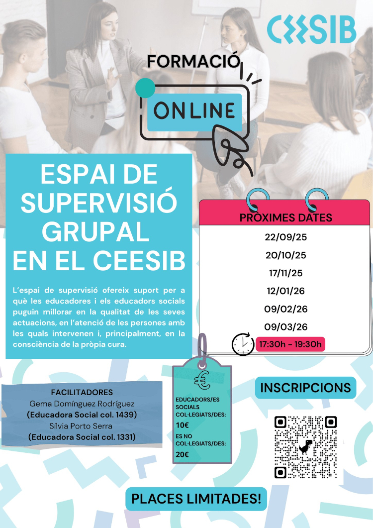 El Col·legi d’Educadores i Educadors Socials de les Illes Balears (CEESIB) publica en sus redes sociales la siguiente actividad formativa: