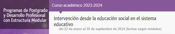 • Título de Especialista Universitario en Diseño, Desarrollo y Evaluación de Programas de Educación Social en el Sistema Educativo: para aquellos matriculados en el Itinerario de Especialista.