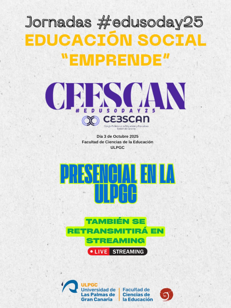 El Colegio Profesional de Educadores y Educadoras Sociales de Canarias (CEESCAN) viene informando en sus redes sociales (Facebook) de la realización de la siguiente actividad, con motivo del Día Internacional de la Educación Social 2025 y publica el programa: