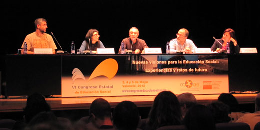 Mesa Redonda coordinada y presentada por Lola Santos Ponce, miembro de la Comisión Permanente del Consejo General de Colegios de Educadoras y Educadores Sociales (CGCEES) y coordinadora del proyecto subvencionado por la Delegación del Plan Nacional sobre Drogas (PNsD), vinculado al pacto “En Infancia Consumo 0” y denominado, La prevención de adicciones en el ámbito escolar, una propuesta para las educadoras y los educadores sociales.