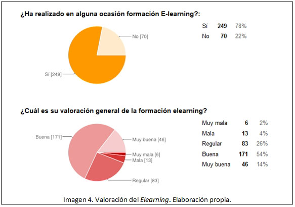 En el cuestionario también se analizaba el conocimiento y la valoración que tienen los participantes de la formación elearning. Un 78% de las personas encuestadas ha realizado alguna vez formación en la modalidad de elearning y un 22% no lo ha hecho nunca.