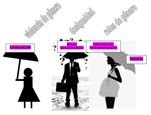 Protejámonos por tanto de esa lluvia de estereotipos y prejuicios vistiendo el paraguas de los valores, la reflexión crítica, la inteligencia socioemocional y la coeducación, para dejar de ser víctimas y a la vez dejar de perpetuar patrones culturales (tanto como personas como profesionales) que fomentan la desigualdad y que a su vez propician graves problemas tales como este tipo de violencia pero que también son la raíz del bullying y/o la homofobia cuando no respondes a dichos roles de género… sin embargo, todo esto da para un desarrollo más profundo que va más allá de este breve artículo, cuya pretensión ha sido precisamente abrir cauces para la reflexión y posible intercambio posterior de acciones desarrolladas desde nuestra disciplina en este sentido y en todos los ámbitos de nuestra intervención.