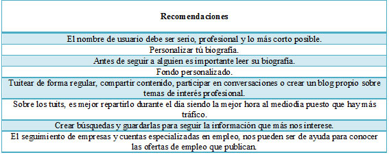 Tabla 4. Aspectos a tener presentes en Twitter®