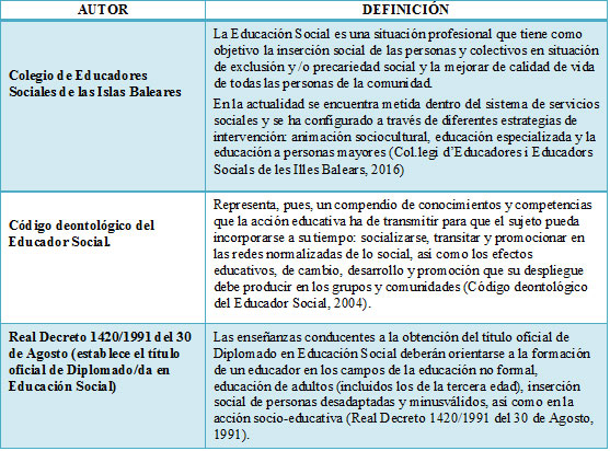 Tabla 1. Diferentes definiciones de Educador/a Social