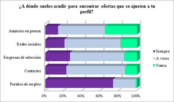 Gráfico 1, ¿Dónde se acude para buscar ofertas de trabajo?