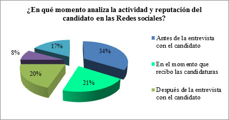 El uso de las redes sociales para analizar el perfil del posible candidato, queda reflejado en la siguiente estadística.