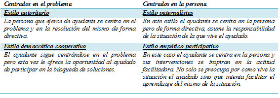 Tabla 1: Estilos de relación de ayuda. (Extraído de Bermejo, 1998:17)