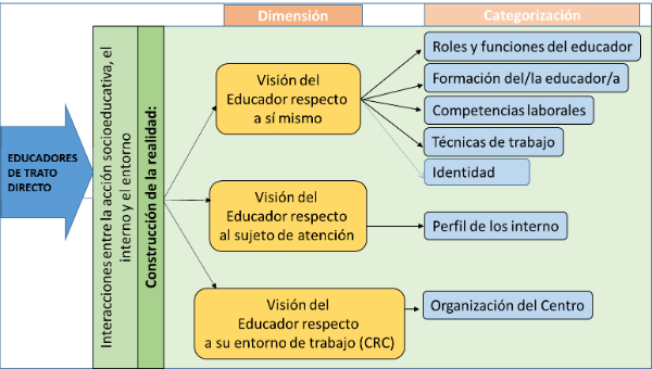 Así, la labor educativa para la reinserción social es relevante a la hora de pensar en el colectivo de Educadores y Educadoras de Trato Directo, quienes se encuentran diariamente con los reclusos en la ejecución de las actividades. Entre sus funciones: vigilar y controlar directamente a los adolescentes en la rutina diaria, en la prevención y el manejo de conflictos, el proceso de acompañamiento, conversación y observación, la labor administrativa y la participación a reuniones de equipo, y entre estas tareas, emanan un detalle de otras tantas que intentan cumplir en su totalidad: