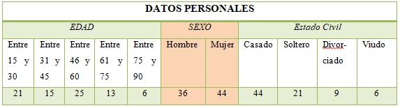 En la siguiente tabla se muestran los datos personales de la población cacereña que han formado la muestra.