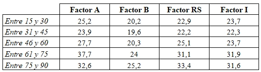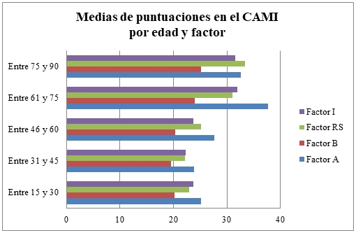 Tabla 2. Medias de puntuaciones en el CAMI por edad y factor.