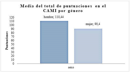 Gráfico 3. Medias de puntuaciones en el CAMI por género.