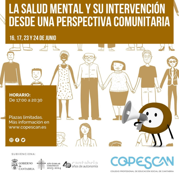 El Colegio Profesional de Educación Social de Cantabria (COPEESCAN) organiza el curso: «Salud mental y su intervención desde una perspectiva comunitaria».