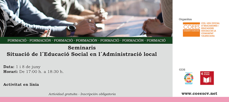 El Col·legi Oficial d’Educadores i Educadors Socials de la Comunitat Valenciana (COEESCV) informa en su Web de la apertura de inscripciones para dos seminarios sobre la ‘Situación de la Educación Social en la Administración Local’.