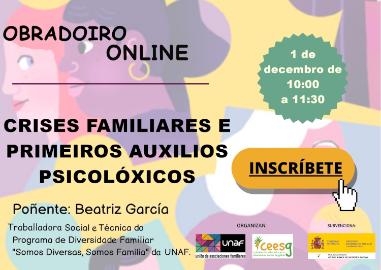 El Colexio de Educadoras e Educadores Sociais de Galicia (CEESG) informa en su Web de la formación: «Taller online: Crisis familiares y primeros auxilios psicológicos».